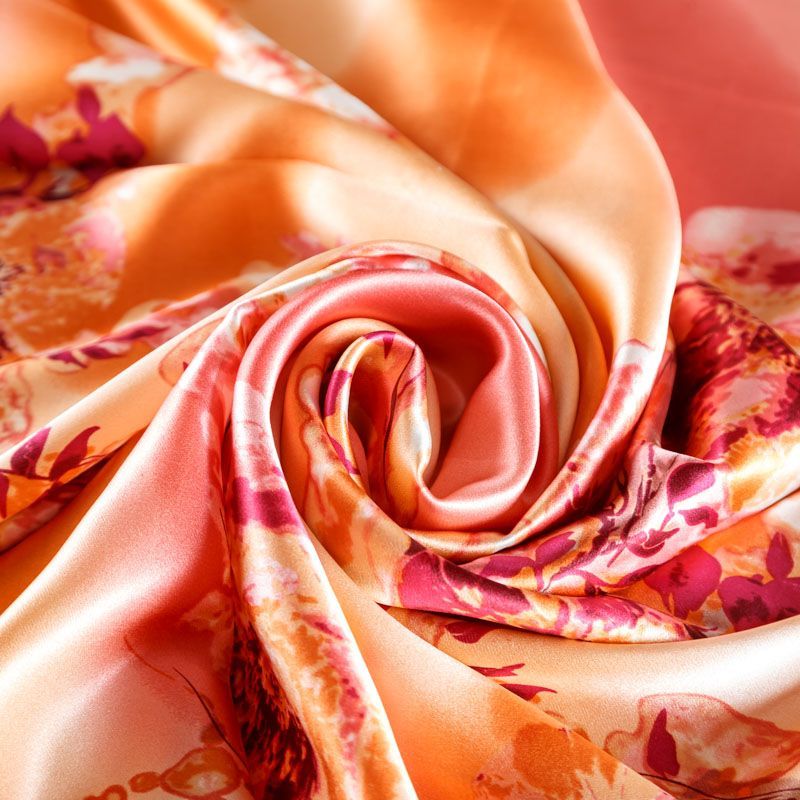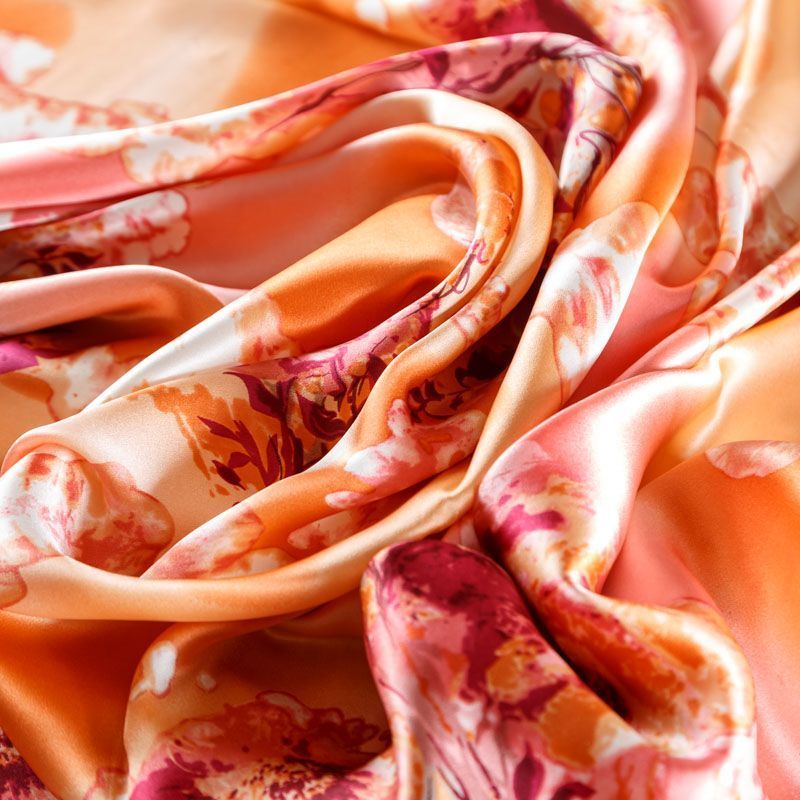 Шелк натуральный К30-247 лососево-розовый принтованный