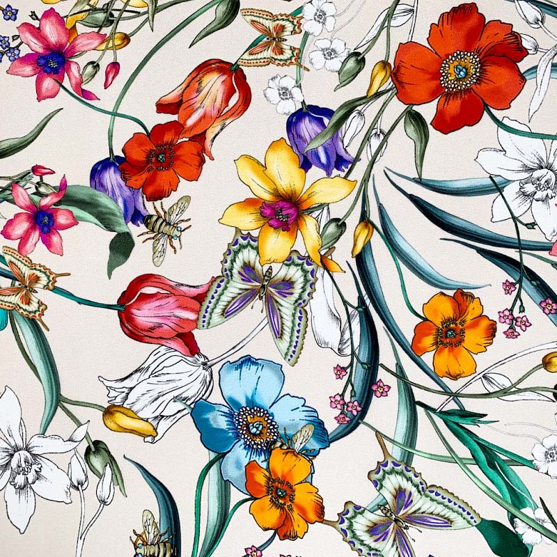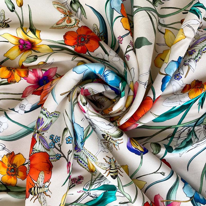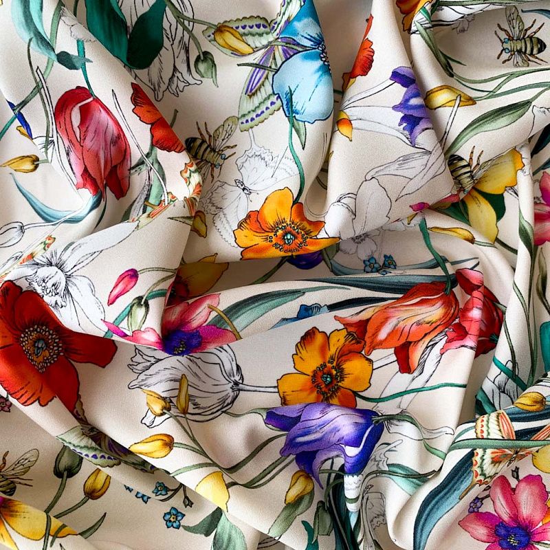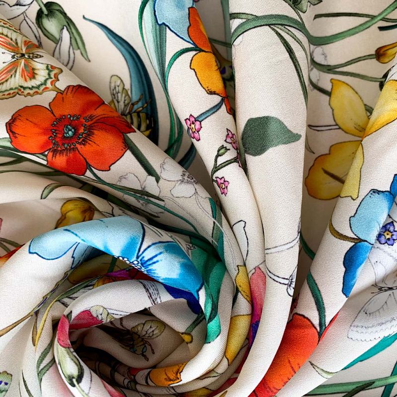 Шелк натуральный К32-159 сливочный принтованный в Великих Луках