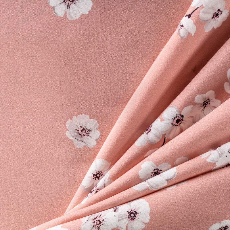Шелк натуральный К32-164 пудрово-розовый принтованный