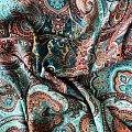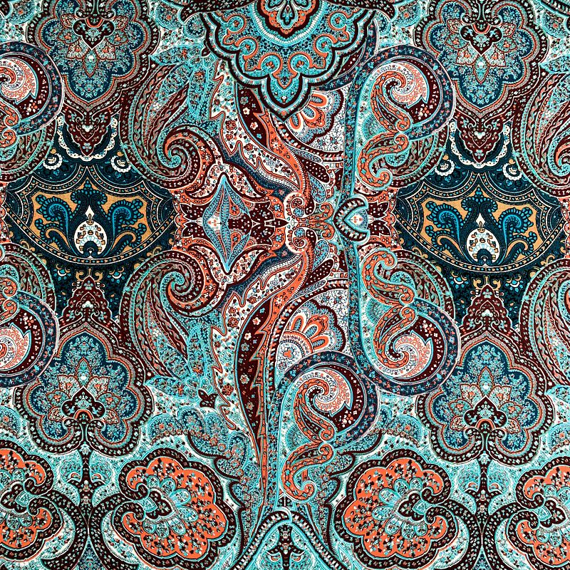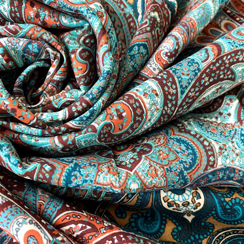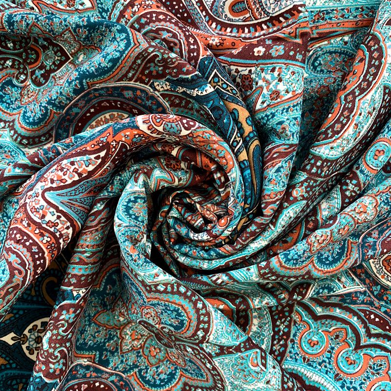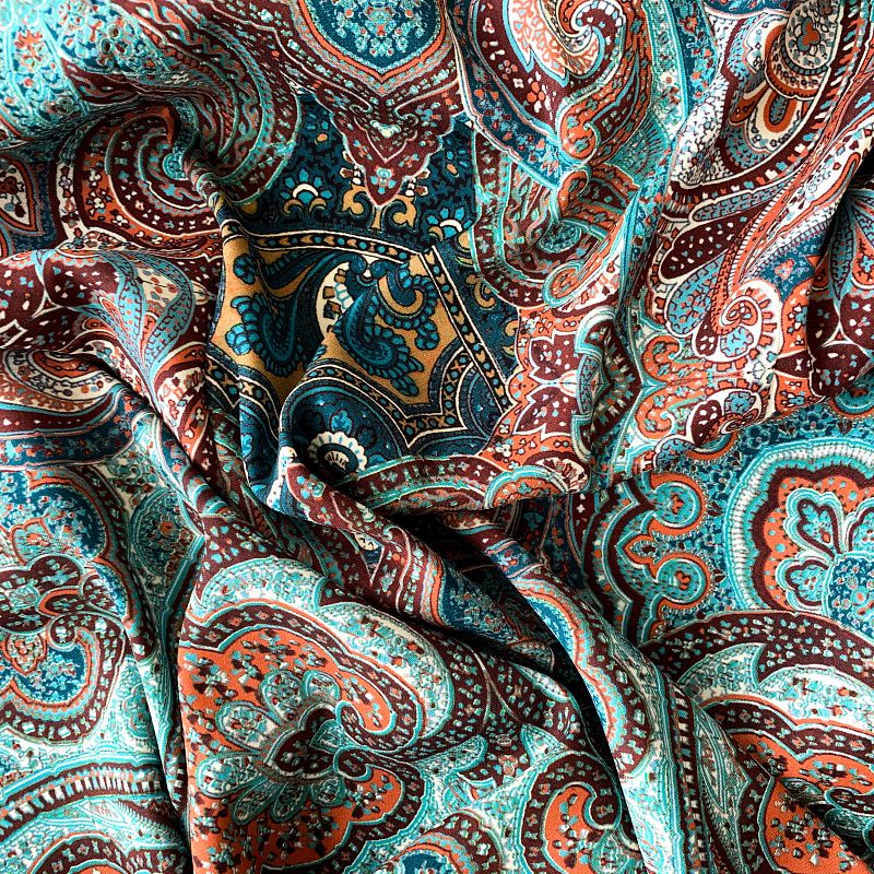 Шелк натуральный К32-242 бирюзово-коричневый принтованный в Великих Луках