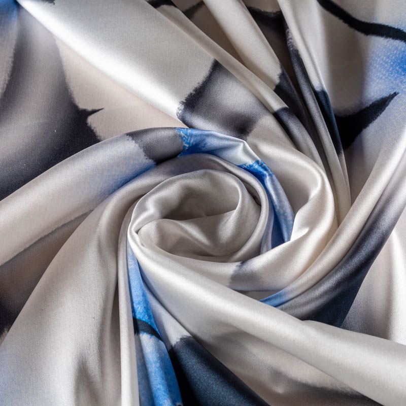 Итальянский атласный шелк с красивым акварельным цветочным принтом. Ткань средней плотности, не просвечивает, струится, хорошо драпируется, тянется за счет эластана в составе. Поверхность глядкая, имеет благородный сатиновый блеск. Подойдет для летних платьев и сарафанов, как летящих фасонов, так и скроенных по косой, накидок, юбок, блузок, костюмов, широких брюк, домашней одежды.