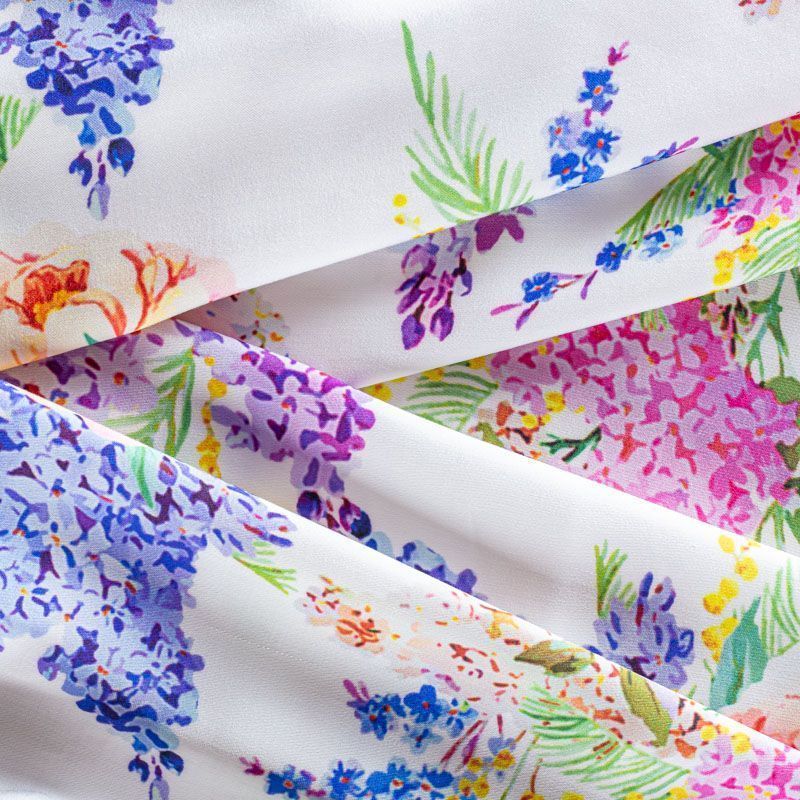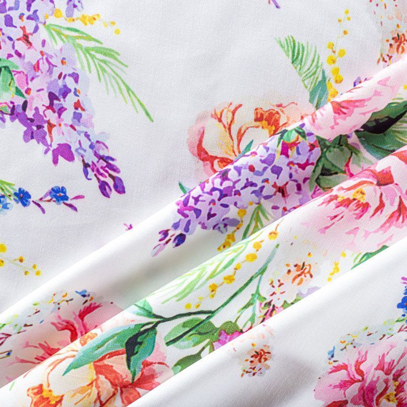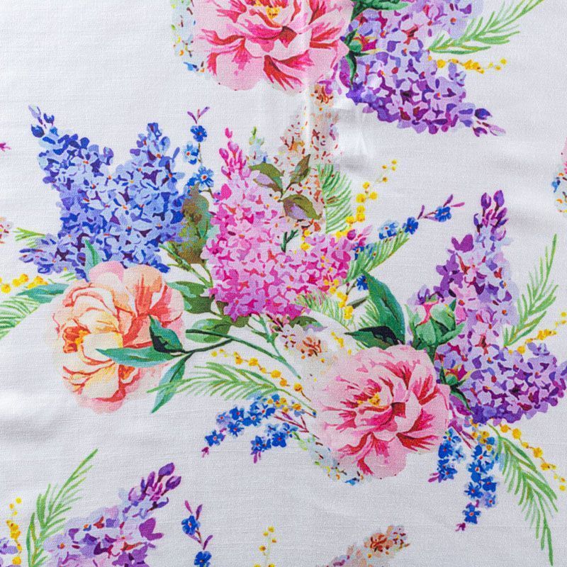 Плательно-блузочный штапель с добавлением шелка с крупным цветочным принтом в пастельных оттенках. Ткань очень мягкая, нежная, пластичная, шелковистая на ощупь, хорошо драпируется, практичная. Особенно актуальна летом, шелк-штапель очень легкий, обволакивающий прохладой. Идеален для пошива летней детской одежды, сарафанов, платьев, юбок, блузок, домашней одежды: халатов, ночной пижамы.