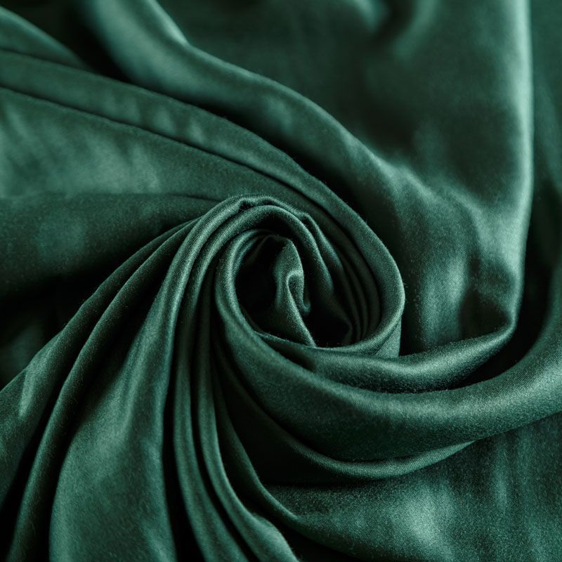 Плательно-блузочный штапель с добавлением шелка в зеленом оттенке. Мягкий, нежный, пластичный, шелковистый на ощупь, хорошо драпируется, практичный, тянется за счет эластана в составе. Особенно актуален летом, он очень легкий, обволакивающий прохладой. Идеален для пошива летней детской одежды, сарафанов, платьев, юбок, блузок, домашней одежды: халатов, ночной пижамы.