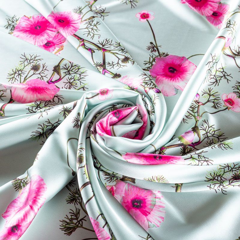 Шелк синтетический 065-01533 серо-мятный принтованный в Великих Луках