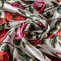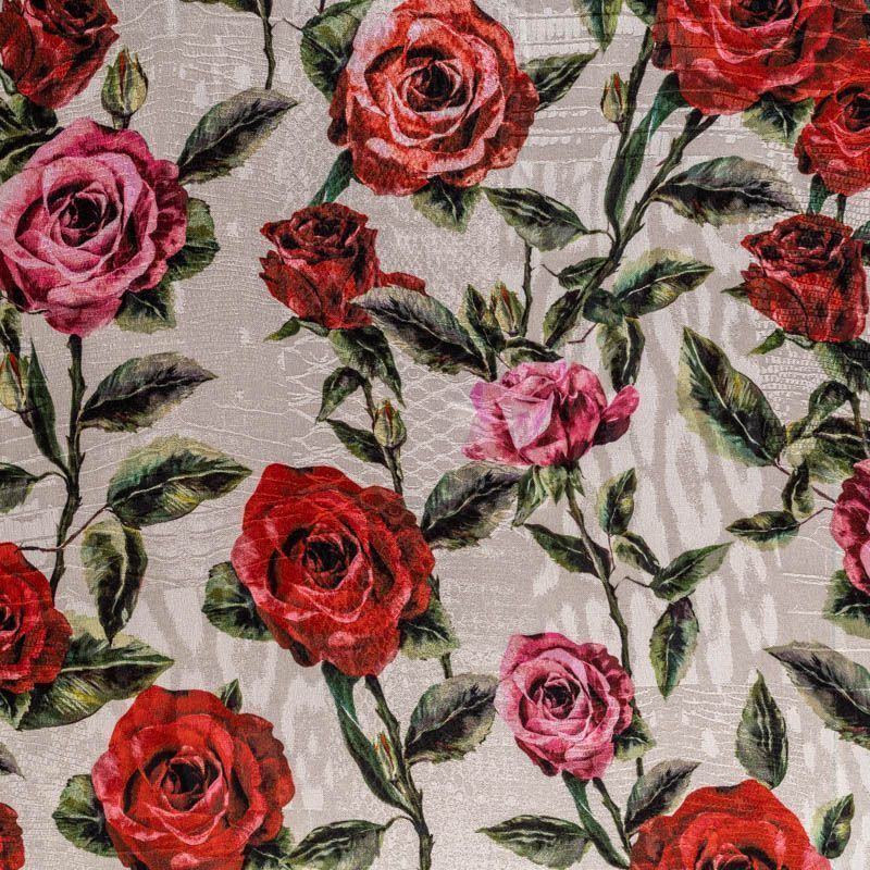 Итальянский жаккардовый шелк с цветочным принтом Поверхность ткани фактурная "под рептилию", со сдержанным блеском, смотрится оригинально и необычно. Ткань тонкая и легкая, немного просвечивает, может потребоваться подклад, струится, хорошо драпируется. Подойдет для летних вечерних и коктельных платьев, накидок, юбок, блузок, топов, костюмов, широких брюк, домашней и пляжной одежды.