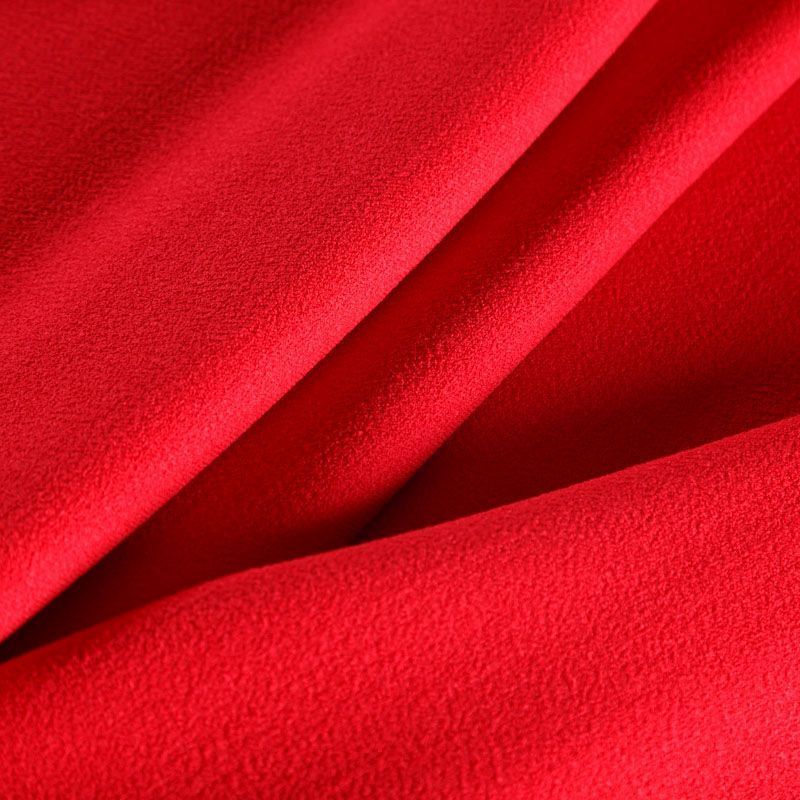 Итальянская фактурная шерсть красного цвета. Ткань двойная, слои разделяются, достаточно пластичная, хорошо держит форму, тянется за счет эластана в составе. Прекрасно подойдет для пошива костюма, юбки, брюк, шорт, легкого пальто, жакета, платья прямого силуэта, жилета.