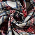 Костюмная шерсть в красно-зеленую клетку с полосками желтого, черного и синего цветов на молочном фоне. Ткань плотная, но очень хорошо драпируется. Очень мягкая, теплая, уютная. Шерсть не колется, в носке очень комфортная. Клетка не очень крупная, выработка в диагональный рубчик. Подойдет для пошива стильного платья прямого или расклешенного силуэта для сезона осень-зима, юбок, костюмов, жакетов, школьной формы.