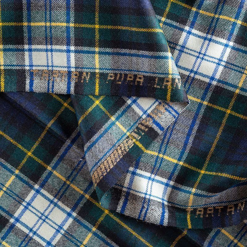 Костюмно-плательная итальянская шерсть средней плотности, мягкая, пластичная, хорошо драпируется и ниспадает. Очень теплая, уютная, не колется, в носке очень комфортная. Сочетание линий зеленого, синего, молочного, желтого и голубого цветов образуют сложную клетку тартан. Ткань прекрасно подойдет для пошива стильного платья прямого или расклешенного силуэта для сезона осень-зима, куртки-рубашки, юбки, костюмов, жакетов, брюк или шорт.
