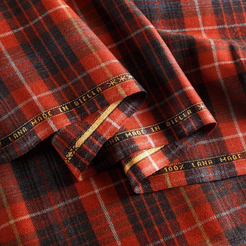 Костюмно-плательная итальянская шерсть средней плотности, мягкая, пластичная, хорошо драпируется и ниспадает. Очень теплая, уютная, не колется, в носке очень комфортная. Сочетание линий черного, серого, белого и терракотового цветов образуют сложную клетку тартан. Ткань прекрасно подойдет для пошива стильного платья прямого или расклешенного силуэта для сезона осень-зима, куртки-рубашки, юбки, костюмов, жакетов, брюк или шорт.