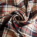 Костюмно-плательная итальянская шерсть средней плотности, мягкая, пластичная, хорошо драпируется и ниспадает. Очень теплая, уютная, не колется, в носке очень комфортная. Сочетание линий  черного, белого, красного и песочного цветов образуют сложную клетку тартан. Ткань прекрасно подойдет для пошива стильного платья прямого или расклешенного силуэта для сезона осень-зима, куртки-рубашки, юбки, костюмов, жакетов, брюк или шорт.