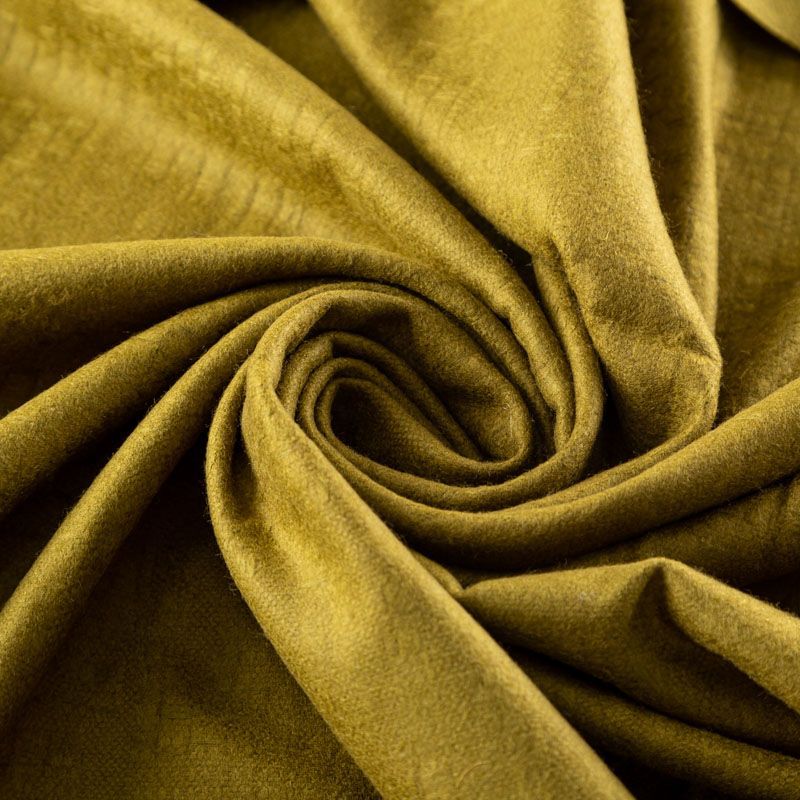 Итальянская текстурированная шерсть цвета зеленой оливки. Ткань плотная, но легкая, поверхность матовая, фактурная, отлично драпируется мягкими складками, не много держит форму. Прекрасно подойдет для платьев, сарафанов, костюмов, брюе, шорт или юбок.