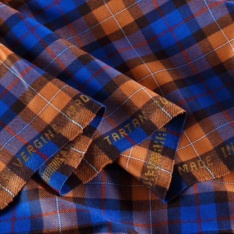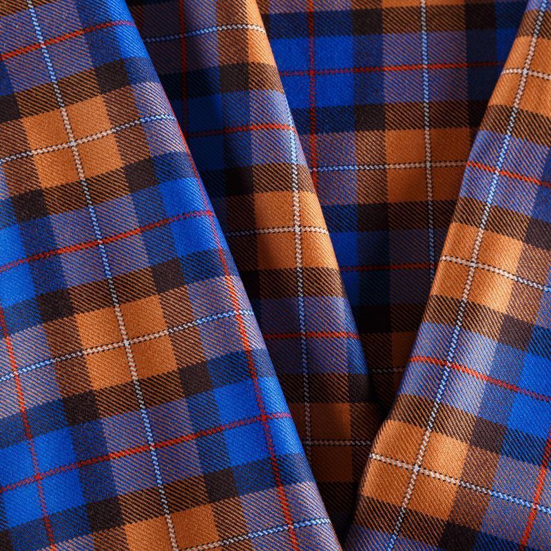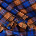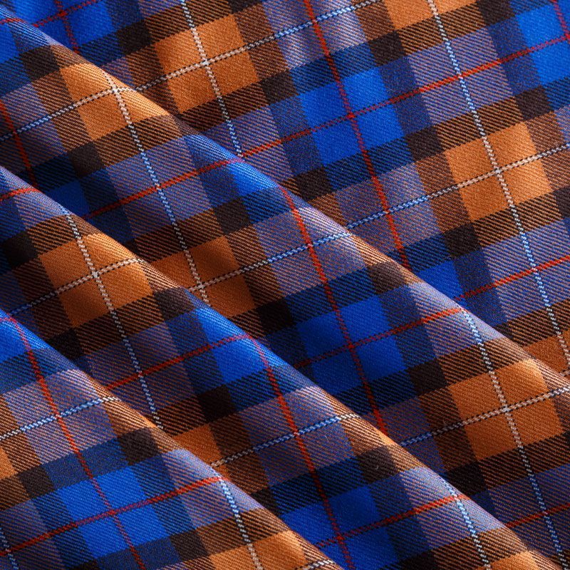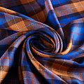 Костюмно-плательная итальянская шерсть средней плотности, мягкая, пластичная, хорошо драпируется и ниспадает. Очень теплая, уютная, не колется, в носке очень комфортная. Сочетание линий синего, черного, белого и терракотового цветов образуют сложную клетку тартан. Ткань прекрасно подойдет для пошива стильного платья прямого или расклешенного силуэта для сезона осень-зима, куртки-рубашки, юбки, костюмов, жакетов, брюк или шорт.