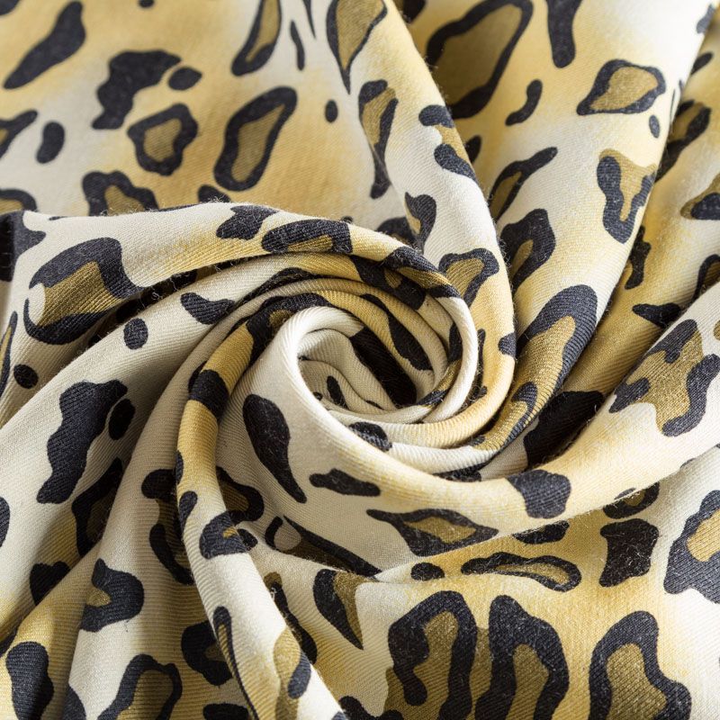 Итальянская плательная шерсть песочного оттенка со стилизованным леопардовым принтом. Ткань тонкая, мягкая и пластичная, отлично драпируется. Поверхность матовая с полотняным плетением нитей. Прекрасно подойдет для создания осенних платьев, теплых туник, юбок, кофточек, а также аксессуаров, таких как палантины, шарфы, платки.