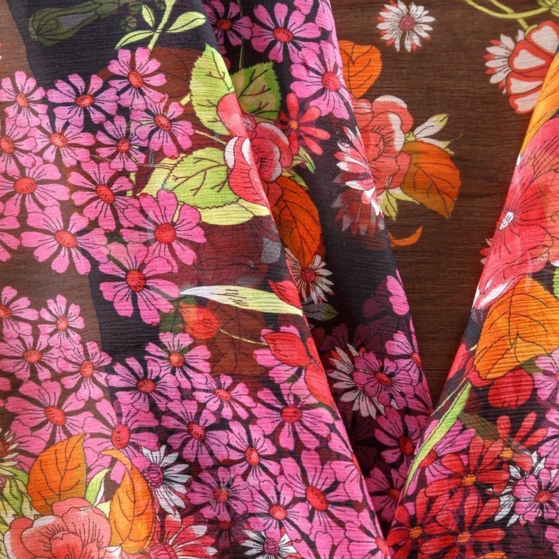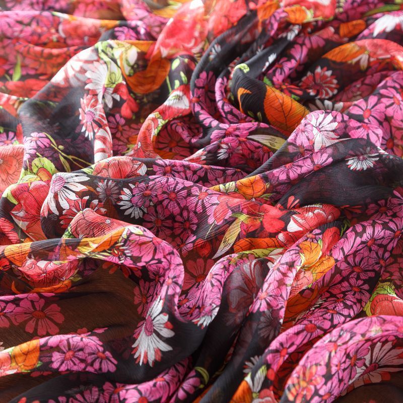 Шифон натуральный К02-425 черный принтованный в Великих Луках