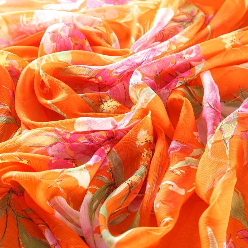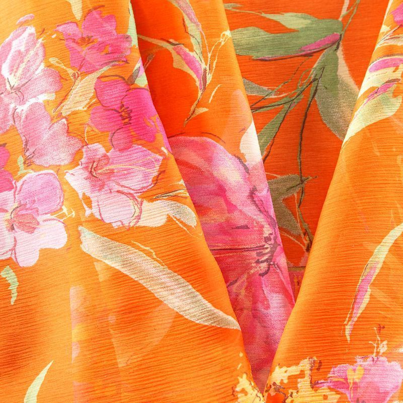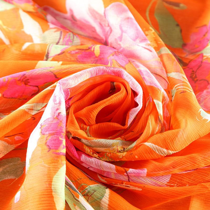 Шифон натуральный К02-426 апельсиновый принтованный в Великих Луках