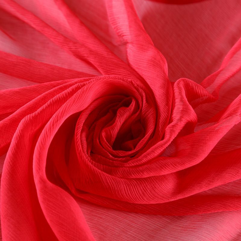 Воздушная шелковая жатая ткань, легкая, тонкая, полупрозрачная. На ощупь шифон-жатка очень мягкий и приятный, не тянется. Подойдет для пошива тончайших воздушных блуз, изумительных вечерних и летних платьев в пол, коротких коктейльных платьев, топов, блузок, туник и элегантных шарфов.