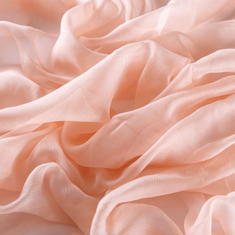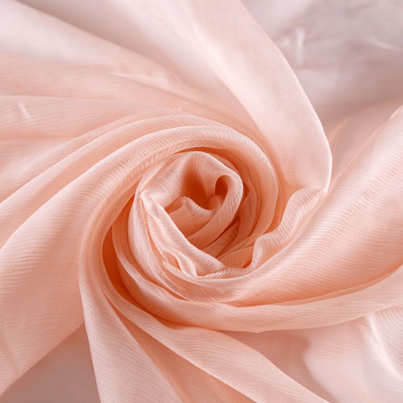 Воздушная шелковая жатая ткань, легкая, тонкая, полупрозрачная. На ощупь шифон-жатка очень мягкий и приятный, не тянется. Подойдет для пошива тончайших воздушных блуз, изумительных вечерних и летних платьев в пол, коротких коктейльных платьев, топов, блузок, туник и элегантных шарфов.