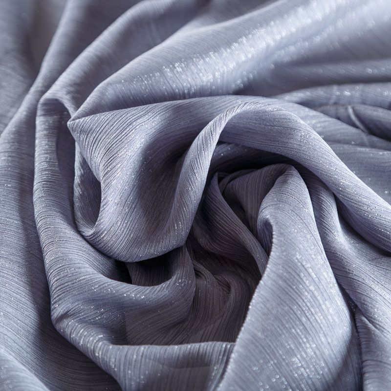 Воздушная жатая ткань с прозрачной люрексной нитью, легкая, тонкая, полупрозрачная. Не тянется и хорошо сохраняет форму. На ощупь шифон-жатка очень мягкий и приятный. Подойдет для пошива тончайших воздушных блуз, изумительных вечерних и летних платьев в пол, коротких коктейльных платьев, топов, блузок, туник и элегантных шарфов.