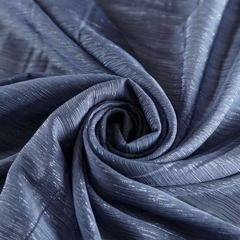 Воздушная жатая ткань с прозрачной люрексной нитью, легкая, тонкая, полупрозрачная. Не тянется и хорошо сохраняет форму. На ощупь шифон-жатка очень мягкий и приятный. Подойдет для пошива тончайших воздушных блуз, изумительных вечерних и летних платьев в пол, коротких коктейльных платьев, топов, блузок, туник и элегантных шарфов.