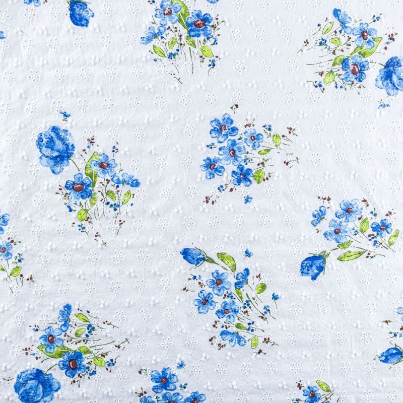 Тренд и мастхэв этого лета - итальянское шитье-ришелье на хлопковой основе. На белом фоне яркий принт в виде небольших цветочных букетов. Вышивка расположена по всему полотну. Ткань мягкая, чуть держит форму, приятная на ощупь, слегка просвечивает. Идеально подойдет для пошива рубашки, блузы, топа в воланами, туники, платья, сарафана, юбки.