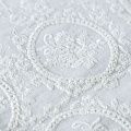 Мягкий и нежный хлопок молочного оттенка с изящной вышивкой. Узор выполнен путём машинной вышивки нитками в цвет ткани и расположен вдоль кромки. Фактура ткани однородная, имеет тенденцию к сминаемости, просвечивает, не тянется, приятная на ощупь. Идеально подходит для создания летних платьев, сарафанов, юбок, блузок и топов.