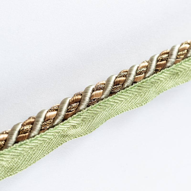Декоративный витой круглый шнур, снабженый тесьмой для втачивания в стыковочный шов изделия. Применяется для отделки мягкой мебели, чехлов, декорирования домашнего текстиля, штор, покрывал, подушек. Позволяет изделию сохранять форму, образуя каркас. Диаметр шнура - 8 мм. Общая ширина шнура с тесьмой - 2 см.