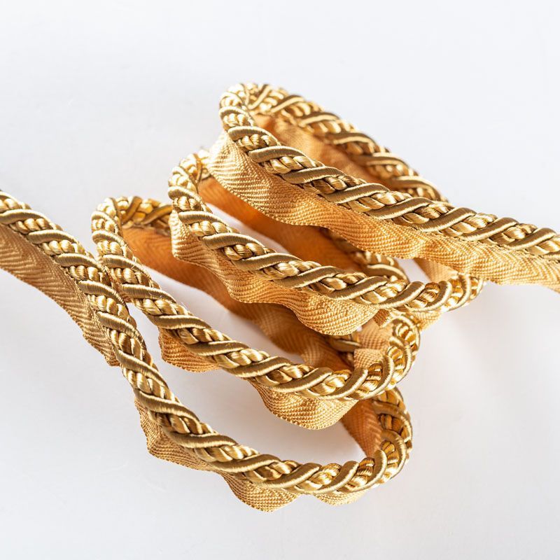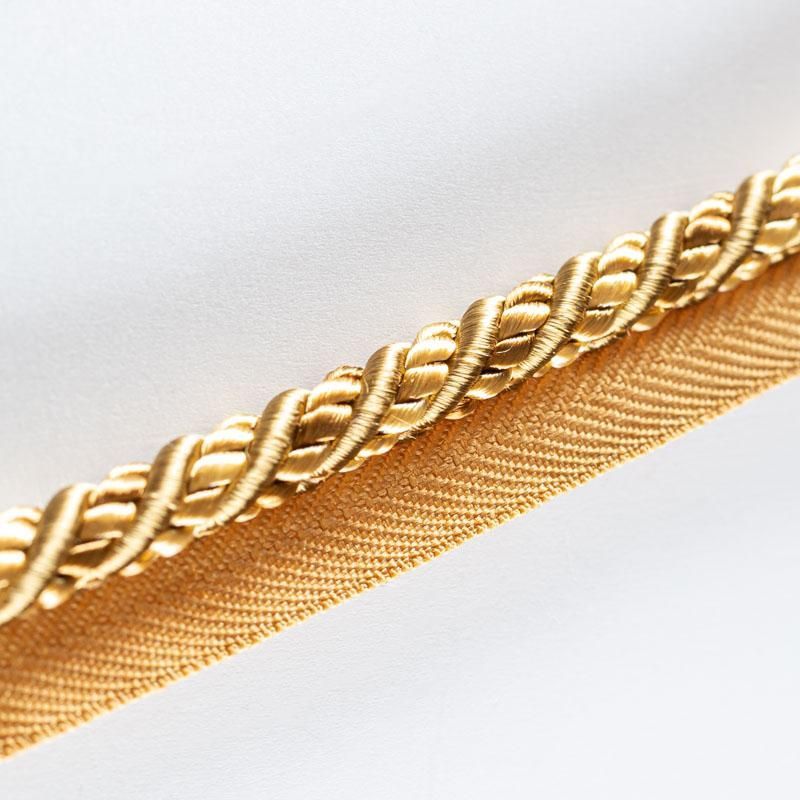 Декоративный витой круглый шнур, снабженый тесьмой для втачивания в стыковочный шов изделия. Применяется для отделки мягкой мебели, чехлов, декорирования домашнего текстиля, штор, покрывал, подушек. Позволяет изделию сохранять форму, образуя каркас. Диаметр шнура - 8 мм. Общая ширина шнура с тесьмой - 2 см.