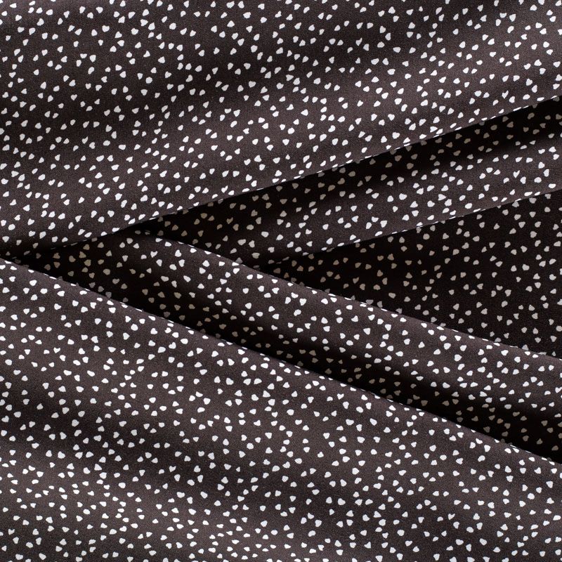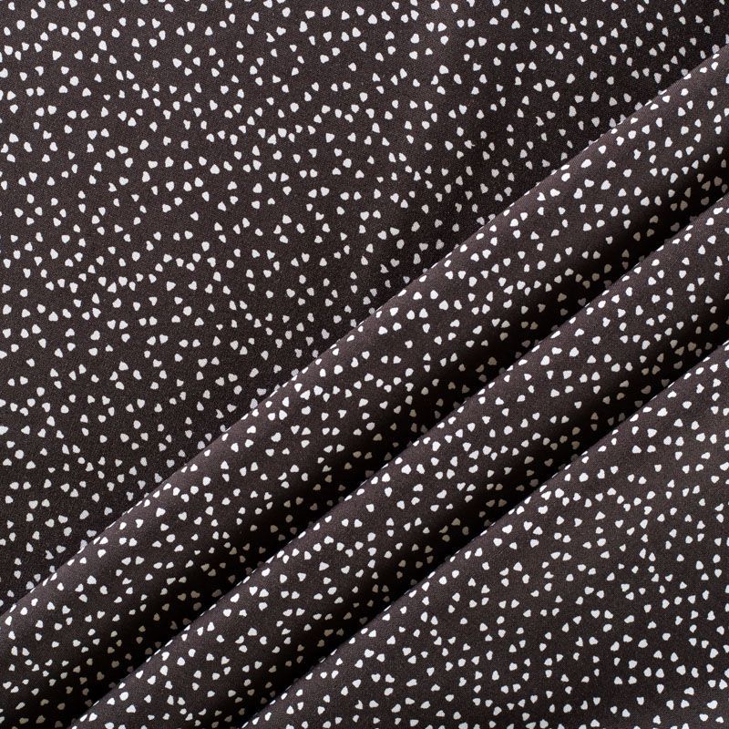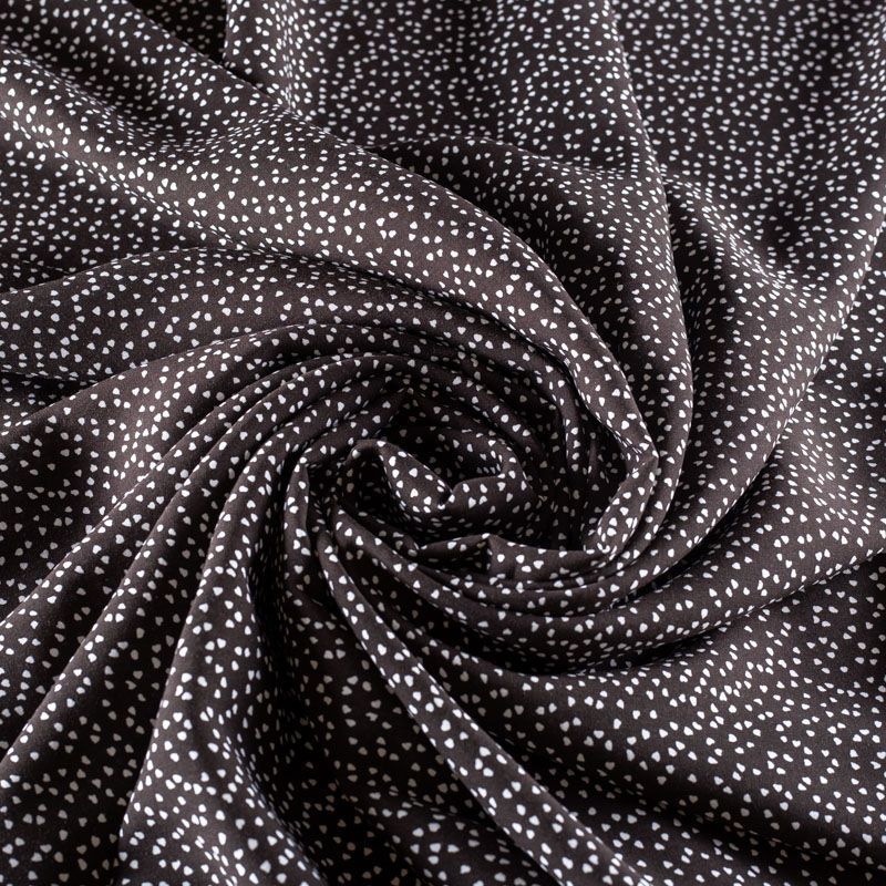 Плательно-блузочный штапель от итальнского дизайнера с мелким романтичным принтом в виде сердечек на черном фоне. Мягкий, тонкий, нежный, пластичный, приятный на ощупь, хорошо драпируется, практичный. Подойдет для пошива платья, топа, блузки, рубашки, юбки, летних брюк.