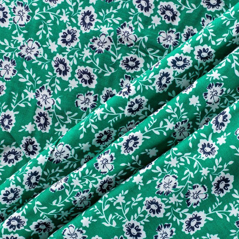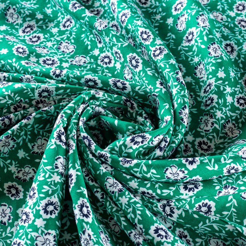 Плательно-блузочный штапель с не крупным цветочным принтом на зеленом фоне. Мягкий, тонкий, нежный, пластичный, приятный на ощупь, хорошо драпируется, практичный. Подойдет для пошива платья, топа, блузки, рубашки, юбки, летних брюк.