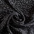 Плательно-блузочный штапель с принтом в мелкий хаотичный горошек на черном фоне. Материал мягкий, тонкий, нежный, пластичный, приятный на ощупь, хорошо драпируется, практичный. Подойдет для пошива платья сарафана, топа, блузки, рубашки, юбки, летних брюк, комбинезона, а также домашней одежды.
