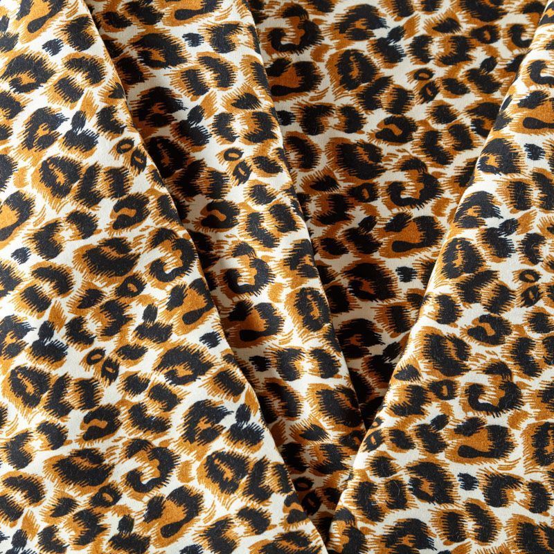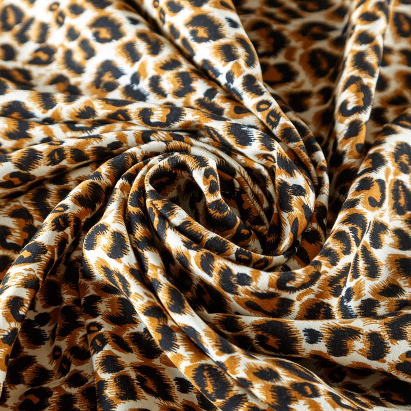 Плательно-блузочный штапель с анималистическим принтом на молочном фоне. Мягкий, тонкий, нежный, пластичный, приятный на ощупь, хорошо драпируется, практичный. Подойдет для пошива платья, топа, блузки, рубашки, юбки, летних брюк, комбинезона.