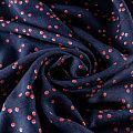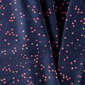 Ткань легкая и пластичная, отлично собирается в мягкие складки, красиво струится. Поверхность гладкая и шелковистая, без блеска. Не просвечивается. Подойдёт для платья, блузки, пляжной туники, топа, летних сарафанов, летящей юбки. Мелкий хаотичный горошек молочно-кораллового цвета освежается спокойный темно-синий фон вискозы.