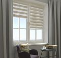 Рулонная штора День-Ночь в отличии от обычных рулонных штор состоит из двойной ткани, которая создает чередование прозрачного и плотного материала. За счет смещения этих слоев относительно друг друга,  можно регулировать количество света. Полотнище само по себе декоративно и необычно - вы сможете выбрать себе шторы для любого интерьера из разнообразных расцветок и дизайнов. Одной шторой день-ночь вы замените и традиционную тюль, и портьеры. Преимущества: экономят пространство; имеют пылеотталкивающую пропитку - вам не придется их стирать, развешивать. В крайнем случае можно протереть влажной губкой. При проветривании хорошо пропускают воздух. Механизм управления цепочечный. Установка шторы возможна на раму, на стену и в проем.