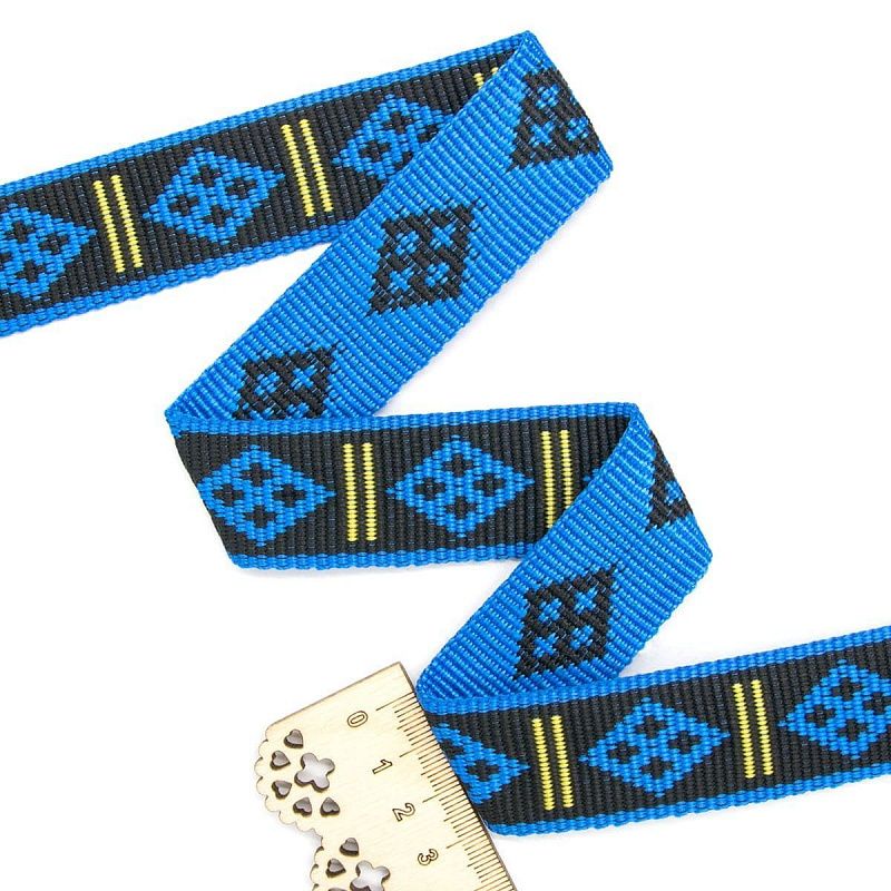 Стропа жаккардовая 28 мм Ромбы 619244 черный/синий/желтый