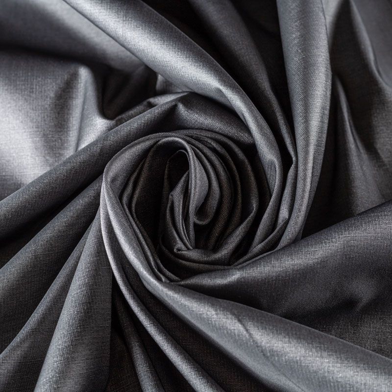 Шелковистая тафта серого оттенка. Поверность матовая, с благородным шелковым лоском. Полотно средней плотности, легкое, отлично держит форму, драпируется жесткими складками. Хорошо смотрится в платьях с пышными юбками и крупными драпировками, костюмах, корсетах для платья, вечерних и коктельных платьях.