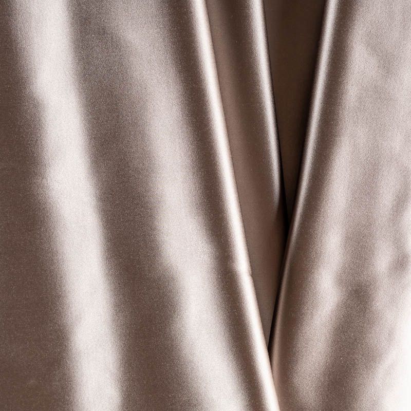 Тафта из натурального шелка бронзового оттенка превосходный выбор для изготовления пышных или с объемными драпировками платьев, юбок, костюмов. Ткань средней плотности с гладкой поверхностью и атласным блеском, хорошо держит форму и драпируется, укладывается в объемные складки, воланы, оборки и драпировки.