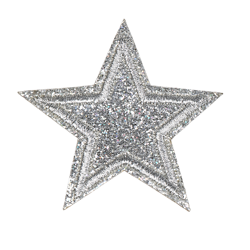 Термоаппликация вышитая TBY 6,5х6,5 см Звезда на глиттере S57 серебряный