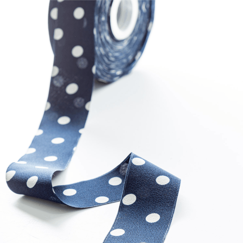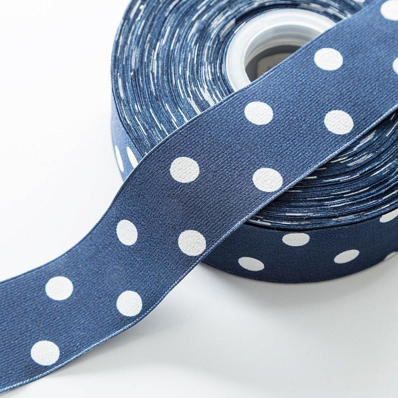 Тесьма декоративная 40 мм белый горох 590944 синий в Великих Луках