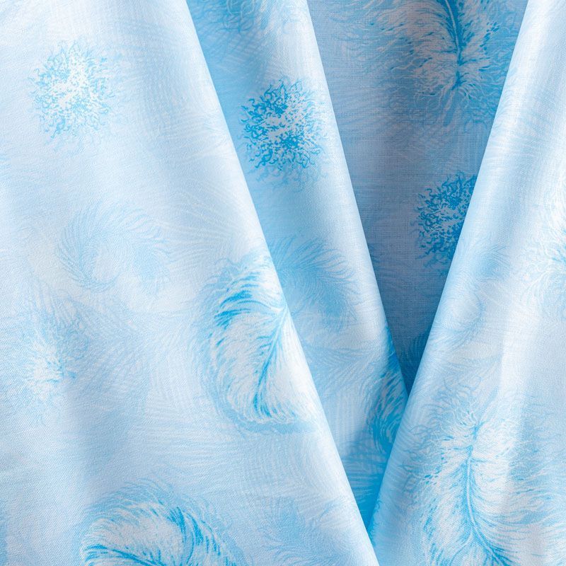 Тик приятного голубого оттенка с нежным воздушным принтом средней плотности. Используется для пошива наперников. Износостойкий, может использоваться для изготовления других изделий. Ткань подходит для любых наполнителей, искусственных и натуральных.