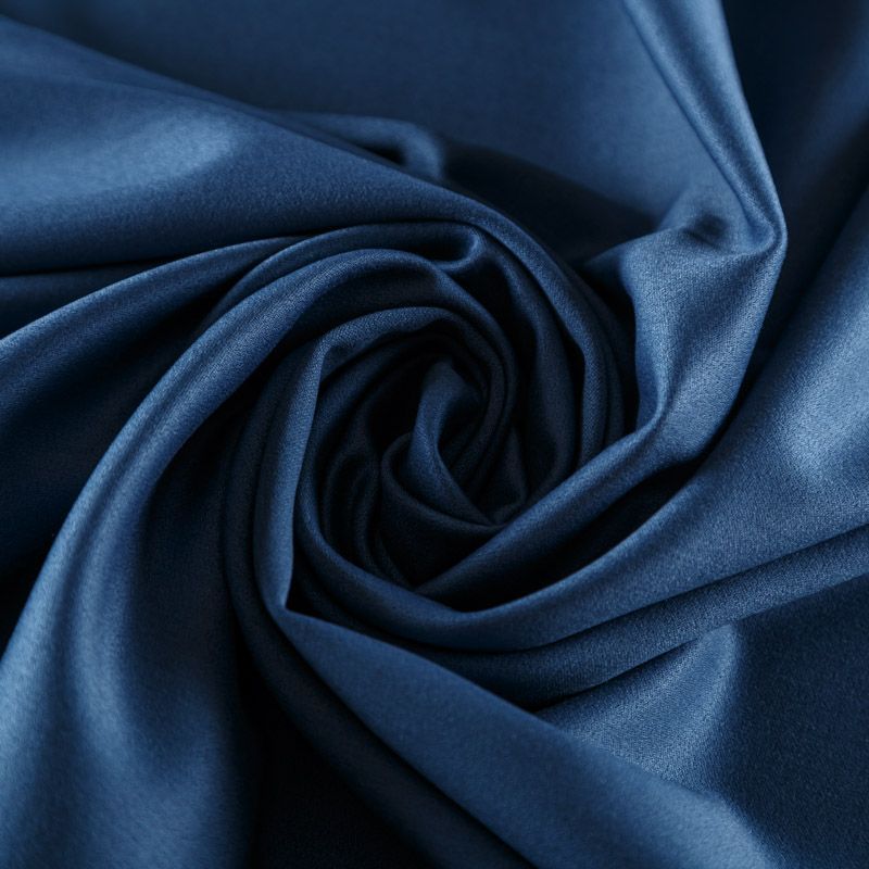 Костюмно-плательная ткань в холодном синем оттенке. Ткань пластичная, очень приятная на ощупь, драпируется в слегка держащие форму складки, поверхность с полотняным переплетением, тянется за счет эластана в составе. Подойдет для всех видов изделий - платьев, сарафанов, модных жакетов, жилетов, брючных и юбочных костюмов, кюлотов, брюк-палаццо, юбок различных фасонов.