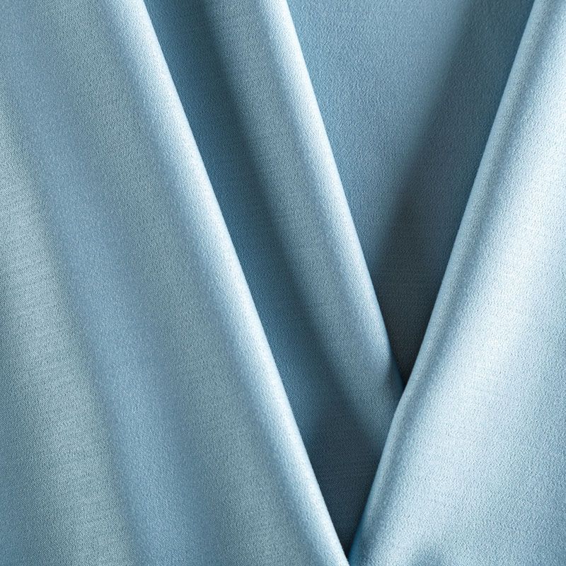 Костюмно-плательная ткань в серо-голубом оттенке. Ткань пластичная, очень приятная на ощупь, драпируется в слегка держащие форму складки, поверхность с полотняным переплетением, тянется за счет эластана в составе. Подойдет для всех видов изделий - платьев, сарафанов, модных жакетов, жилетов, брючных и юбочных костюмов, кюлотов, брюк-палаццо, юбок различных фасонов.