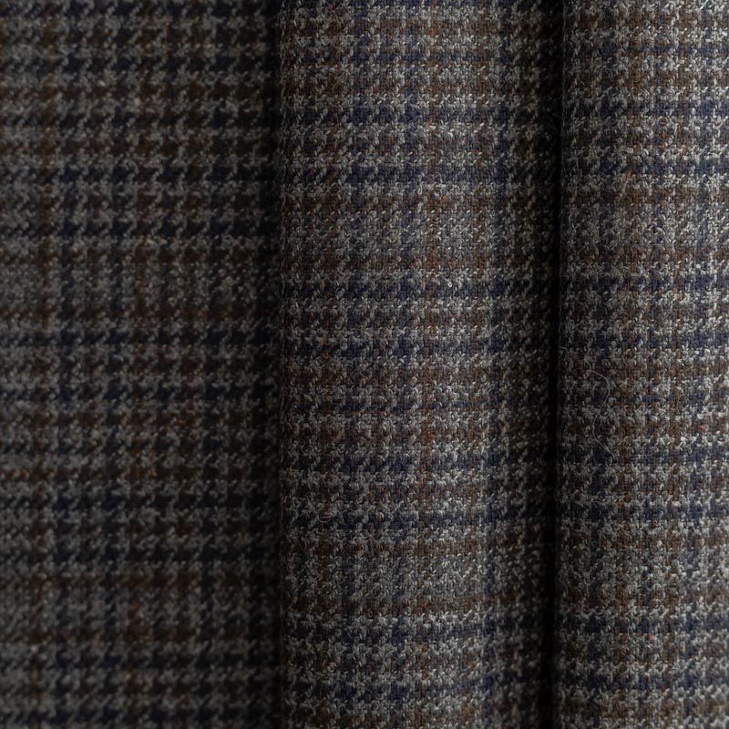 Ткань на основе шерсти с добавлением шелка. Тонкая, мягкая, прочная, приятная на ощупь. Размер внешней клетки - 6х6 см