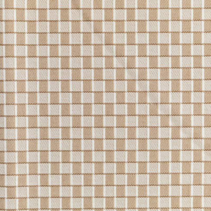 Плотная костюмно-плательная ткань, немного суховатая, но приятная на ощупь, тянется за счет эластана, формоустойчива, не мнется, хорошо драпируется. Мелкая клетка образована за счет расположенных в шахматном порядке квадратиков бежевого и молочного цветов. Ткань отлично подойдет на костюмы, юбки, брюки, платья, жакеты, кардиганы.