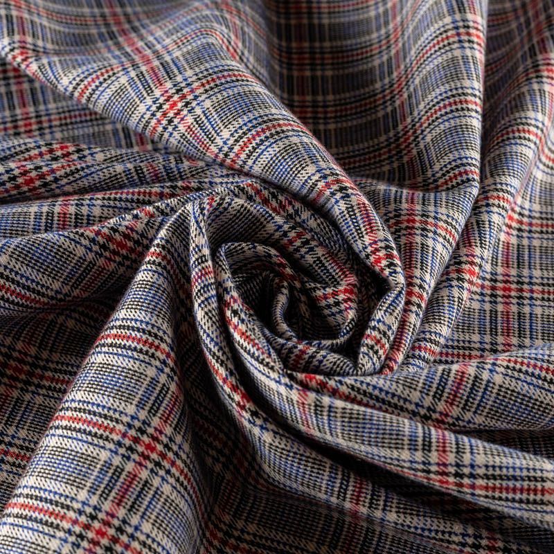 Сочетание линий черного, синего и красного цветов образует сложную многоцветную клетку.