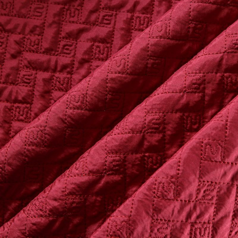 Двухслойная курточная тканьбордового оттенка, с геометрической стежкой нитками в тон полотну. Нижний слой - синтепон, верхний -  полиэстер, по качеству напоминает болонь. Ткань легкая, пластичная, хорошо драпируется. Прекрасно подойдет для  пошива пальто, курток, жилетов, накидок-кейпов, объемных сумок, одежды для домашних питомцев, туристического снаряжения.