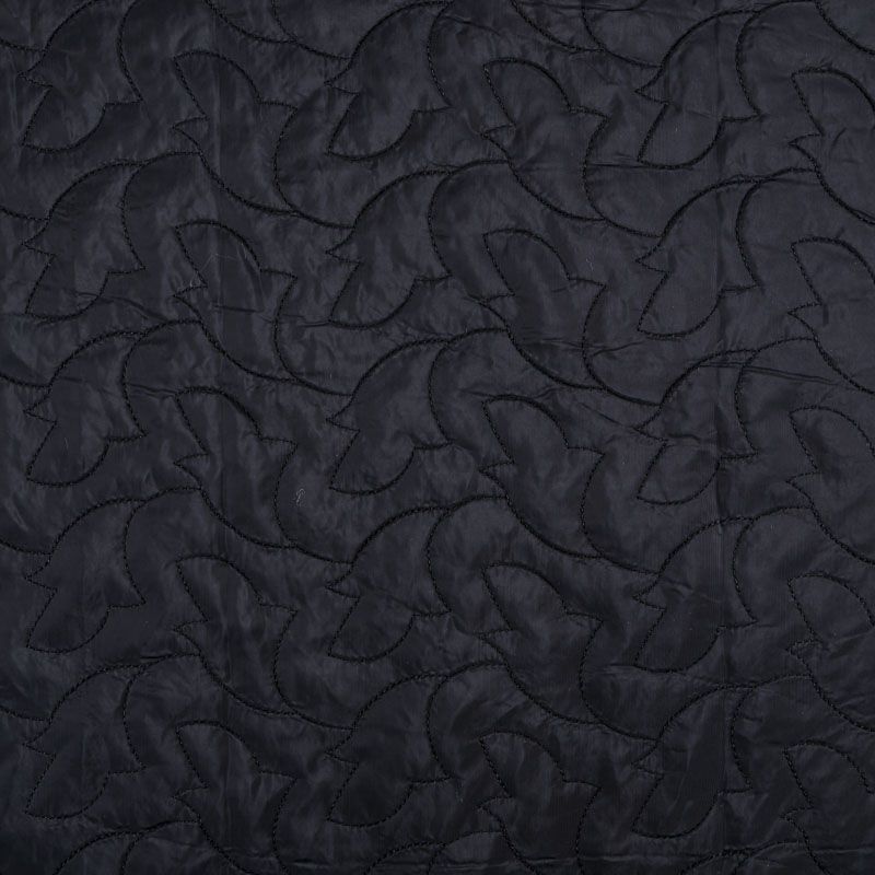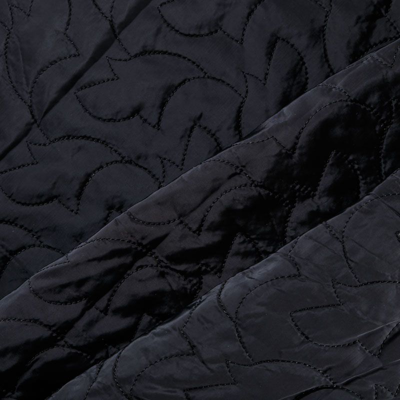 Двухслойная курточная ткань черного цвета, простеганная фигурной вышивкой нитками в тон. Нижний слой - синтепон, верхний - плотный матовый полиэстер. Очень мягкая и легкая, пластичная, хорошо драпируется. Прекрасно подойдет для  пошива легких пальто, курток, жилетов, накидок-кейпов, объемных сумок.