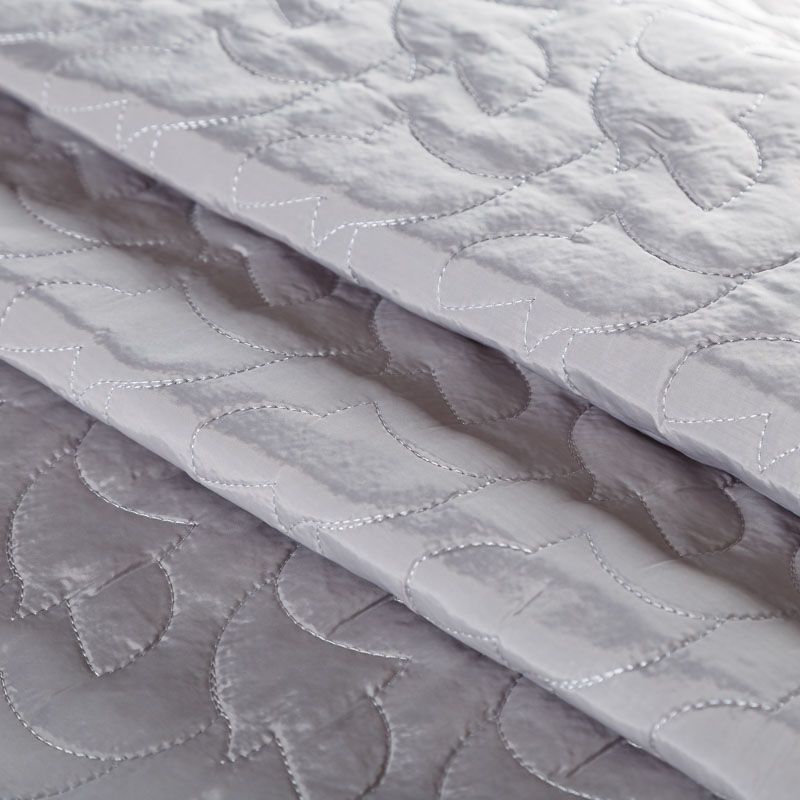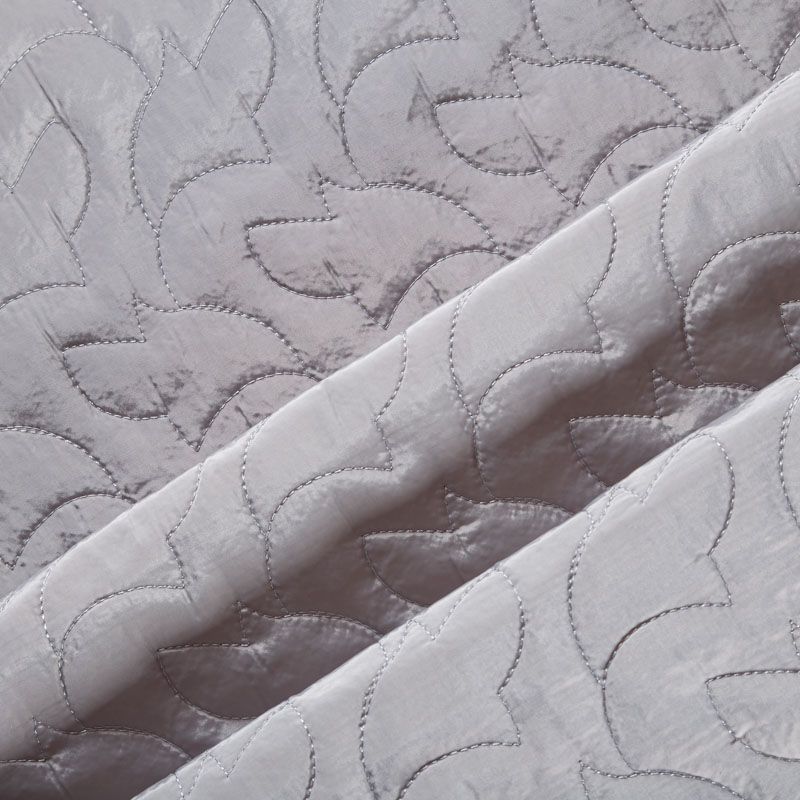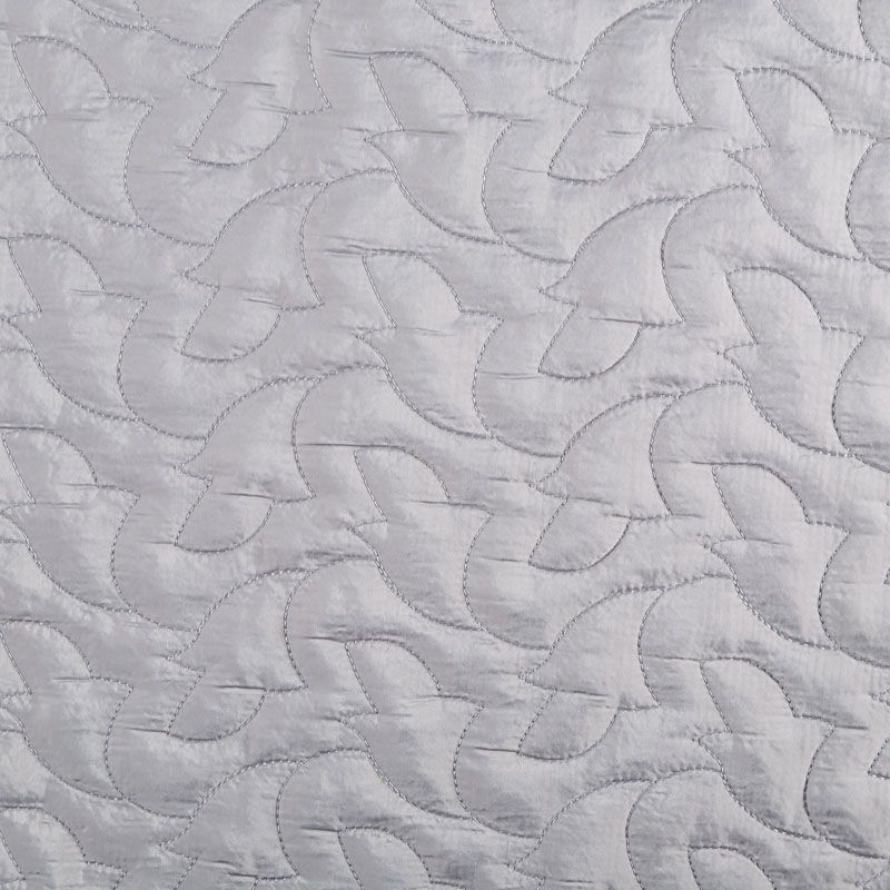 Двухслойная курточная ткань светло-серого оттенка, простеганная фигурной вышивкой нитками в тон. Нижний слой - синтепон, верхний - плотный матовый полиэстер. Очень мягкая и легкая, пластичная, хорошо драпируется. Прекрасно подойдет для  пошива легких пальто, курток, жилетов, накидок-кейпов, объемных сумок.
