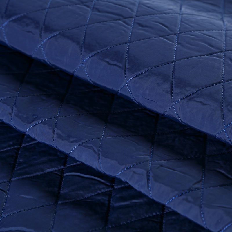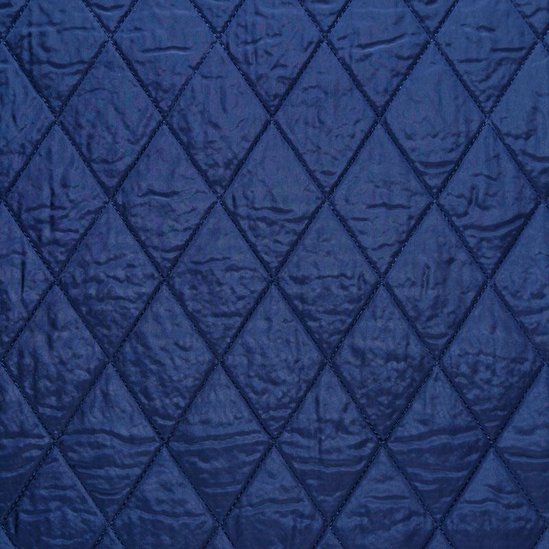 Двухслойная курточная ткань темно-синего цвета, простеганная не крупными ромбами. Нижний слой - синтепон, верхний - матовый полиэстер с жатым эффектом. Очень мягкая и легкая, пластичная, хорошо драпируется. Прекрасно подойдет для  пошива легких пальто, курток, жилетов, накидок-кейпов, объемных сумок.