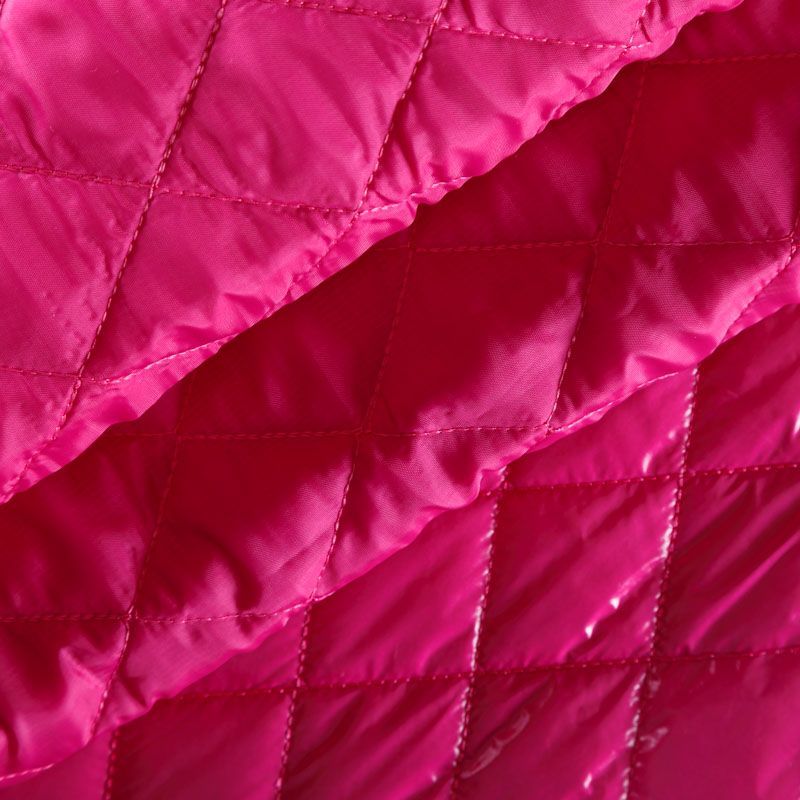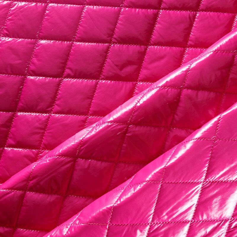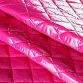 Трехслойная курточная стежка ярко-розового цвета, простеганная не крупными ромбами. Верхний  слой - полиэстер, по качеству напоминающий болонь, средний слой - синтепон, нижний слой - подкладочная ткань в тон лицевой. Очень мягкая и легкая, пластичная, хорошо драпируется. Прекрасно подойдет для  пошива легких пальто, курток, жилетов, накидок-кейпов, объемных сумок.