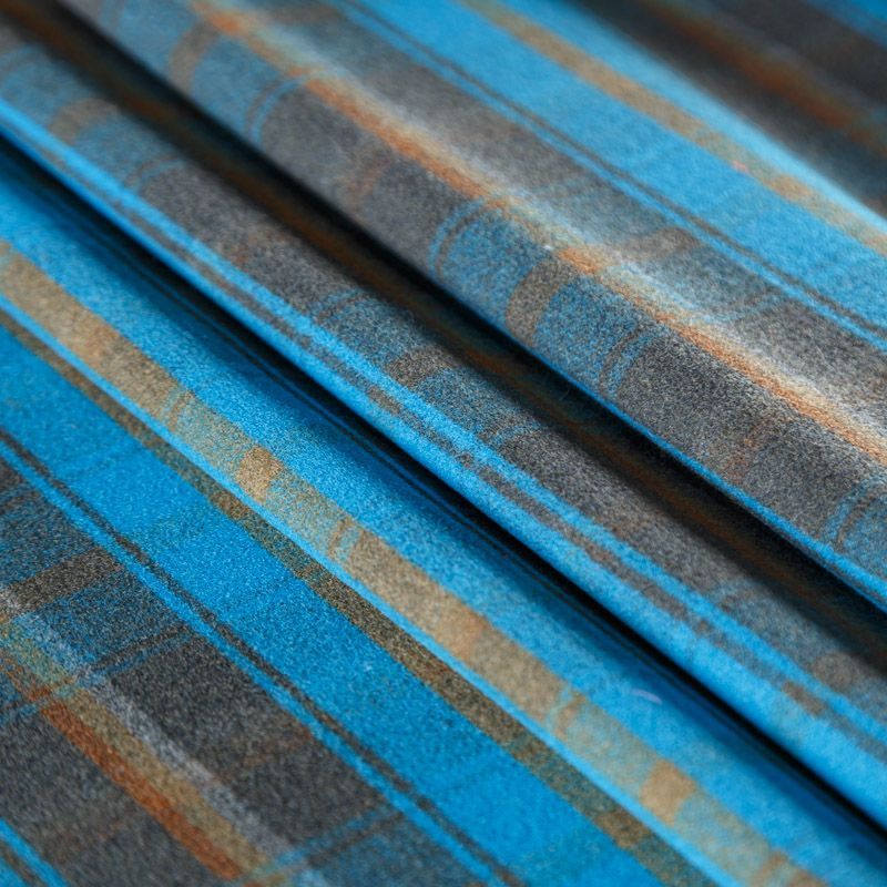 Пальтовая ткань в сине-голубом оттенке в клетку. Ткань плотная, достаточно теплая, комфортная для одежды на сезон осень-зима. Полотно имеет короткий ворс. Мягкое и нежное на ощупь, не толстое и не тяжелое, хорошо держит форму. Прекрасно подойдет для пошива женских пальто, теплых костюмов, кейпов, мягких бомберов, жилетов и головных уборов.